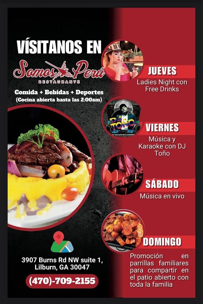 Discover the vibrant spirit of Peru at Somos Peru, your go-to destination for live music and delectable Peruvian cuisine in Lilburn, GA. Located at 3907 Burns Rd NW, we offer a welcoming atmosphere, complete with a rooftop terrace and excellent cocktails. Whether you're joining us for a lively lunch, a cozy dinner, or a night out with friends, enjoy quick service and an array of delicious dishes, perfect for sharing. With wheelchair accessibility and a diverse drink menu featuring local favorites, Somos Peru is the ideal spot for food lovers and music enthusiasts alike. Experience the warmth of Latino culture—come visit us today!